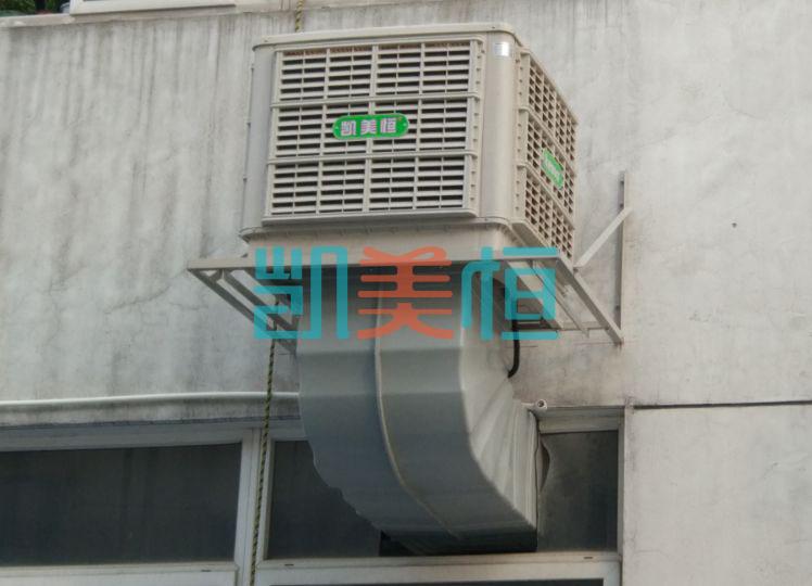 3.環(huán)??照{(diào),對車間外空氣降溫后送入車間內(nèi)降溫。車間外墻上安裝環(huán)保空調(diào),它是通過風(fēng)機(jī)往車間內(nèi)送風(fēng),室外的新鮮空氣流經(jīng)浸水的濕簾后空氣與水份充分接觸同時吸收空氣重點中的顯熱,從而達(dá)到降溫、換氣、除塵、增加車間內(nèi)空氣含氧量的目的,這個方案特別適用于高溫及人群密集場所。