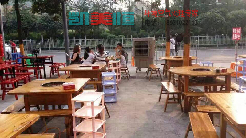 現在很多壩壩宴,火鍋店,露天餐廳,露天游樂園,露天咖啡廳都是因為夏季天氣炎熱客源量大大減少,戶外又無法安裝空調,找不到合適降溫方式,風扇越吹越熱,還讓客人不舒服。給大家提供一種非常有效方式。移動冷風機來進行降溫,他可以在炎熱夏季,短短幾分鐘可以降低周圍環境溫度3到15度,現在很多農家樂戶外餐廳都有做,發圖片給大家看看。