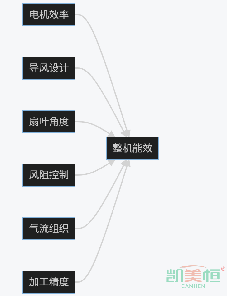 六維協同技術:永磁同步EC超高效電機+航空級流線風道+三維平衡扇葉+低阻流道+精工機身+底噪氣流控制