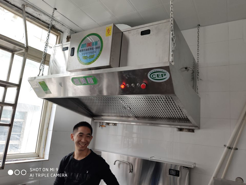 凱美恒油煙凈化一體機應安裝在離地面1.6-1.7米高處。出風排放方式可根據廚房結構靈活確定。采用頂出風或后出風等方式,油煙凈化率高達95%以上,排出的油煙近似于清潔空氣,因此可以直接低空排放。凱美恒油煙凈化機適用于機關單位、學校、食堂及各類型餐飲業等廚房油煙凈化。凱美恒油煙凈化一體機告別了傳統式凈化器、支架、煙管的繁雜安裝程序,完全規避高空作業風險,杜絕火災隱患,保障生命和財產安全,在玻璃幕墻式的高樓大夏和居民小區開店無后顧之憂,創造低碳、環保、綠色的生活環境。
